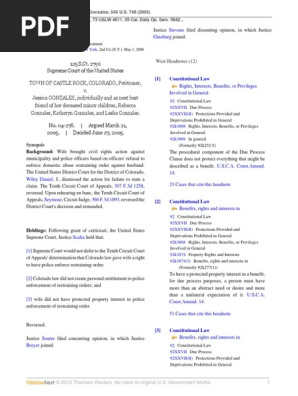 Town Of Castle Rock Colorado V Gonzales 2004 Us Supreme Court Case That States That Law Enforcement Does Not Owe A Duty To Protect People From Harm Pdf Fourteenth Amendment To The United States Constitution Restraining Order